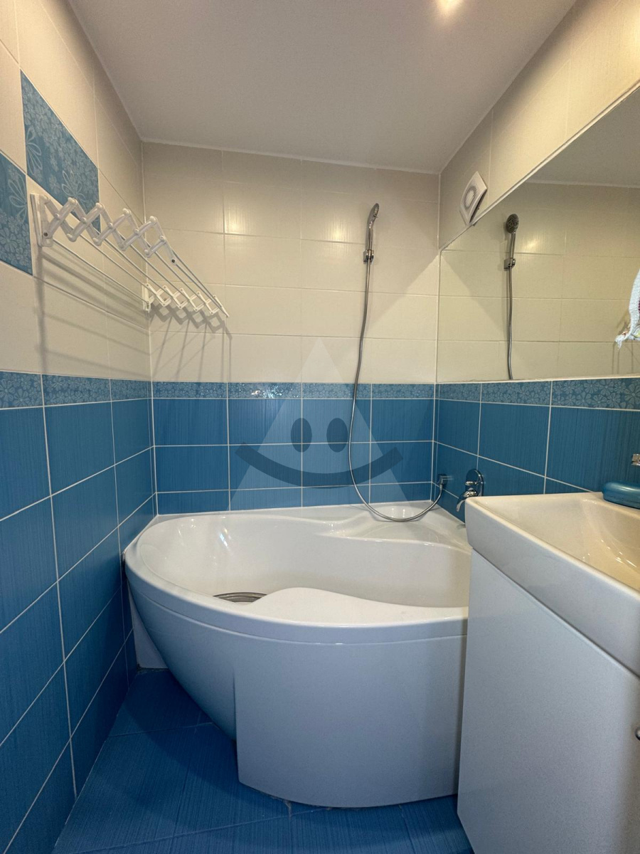 Veľká vstupná chodba, kúpeľňa, samostatné WC, izba spojená s kuchyňou a špajzou. Spálňa s balkónom a dve detské izby.