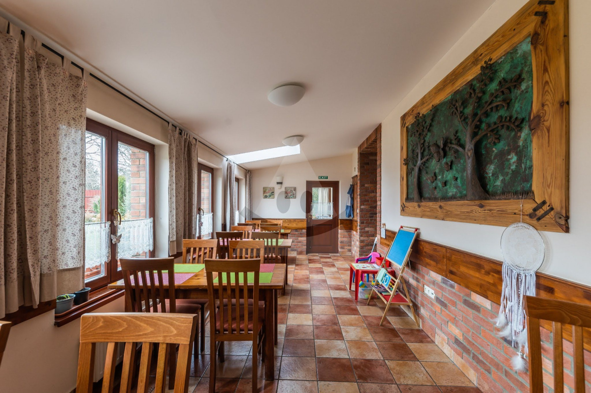 3-oj podlažná zateplená budova, kolaudovaná v roku 2007, postavená z tehly, strecha valbová, strešná krytina BRAMAC. Kúrenie je podlahové vodovodné na samostatný plynový kotol. Nachádza sa tu 11 priestranných izieb s balkónmi a kapacitou 38 lôžok, reštaurácia s kapacitou 64 miest s možnosťou 3 samostatných reštauračných častí, kuchyňa s komplet vybavením, recepcia, technické zázemie.